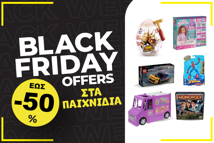 Ανακαλύψτε τώρα την τεράστια συλλογή παιχνιδιών μας και αγοράστε ακόμα και τα Χριστουγεννιάτικα δώρα την περίοδο του Black Friday, ώστε να επωφεληθείτε από την σούπερ προσφορά μας. Για παιδιά με απαιτήσεις και γονείς έξυπνους που θέλουν να συνδιάζουν την καλύτερη τιμή με την καλύτερη ποιότητα.